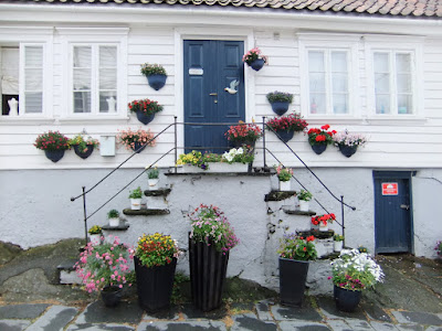 The day after the atrocities in Oslo and on the island of Utøya, we were mercifully still unclear about the scale of the murders and enjoying a rainy day on our first port of Stavanger, specifically the old town with its white buildings and neat gardens. The wooden houses of this conservation area represent the largest such settlement in northern Europe, a rare survivor, wood not proving a durable building material in an age of open fires. The area is uncommercialised and made even more attractive by the liberal use of potted plants and window boxes. No-one was about, the residents doubtless absorbing the dreadful news. The national despair pervaded all Norway for the two weeks of our travels. Such a lovely country and the slaughter of the innocents.